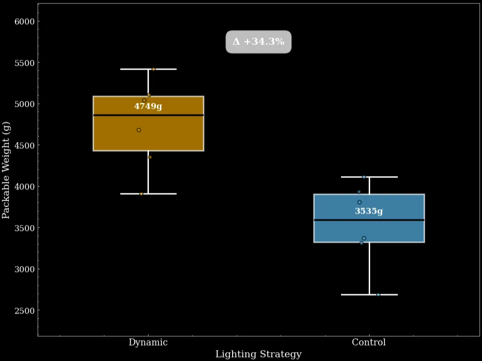 Highlight: 34% yield increase with dynamic lighting informed by real-time plant feedback